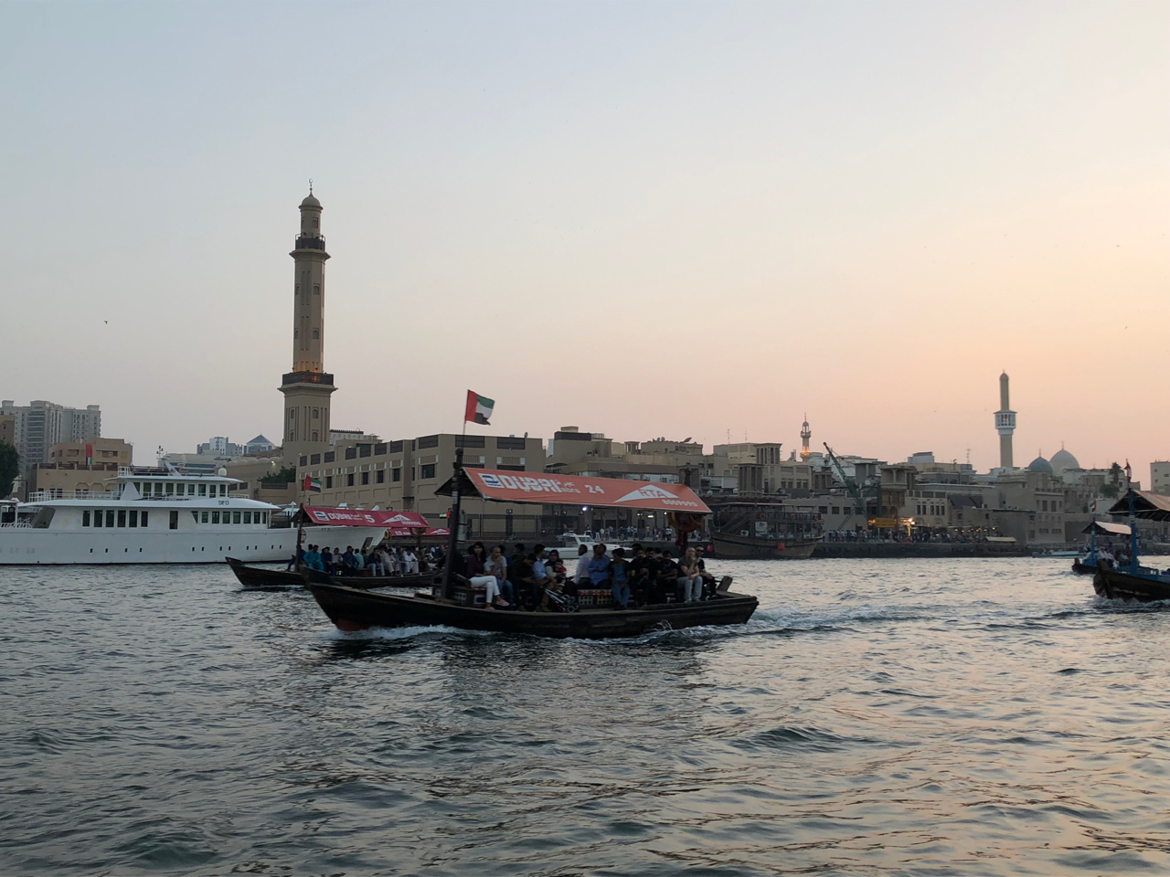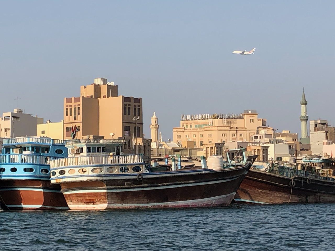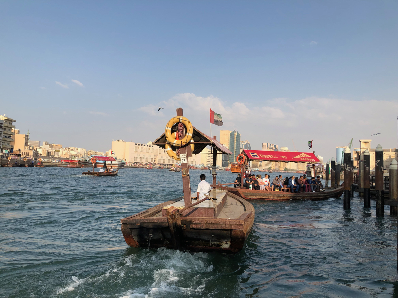 Um 14:30 Uhr trafen wir uns dann, um in Dubai die Souks und den Creek zu erkunden. Wir spazierten durch die Souks beiderseits des Creeks, bestaunten die Dauw’s, die am Ufer des Creeks zum Be- und Entladen liegen, und unternahm eine private Abra Fahrt auf dem Creek.