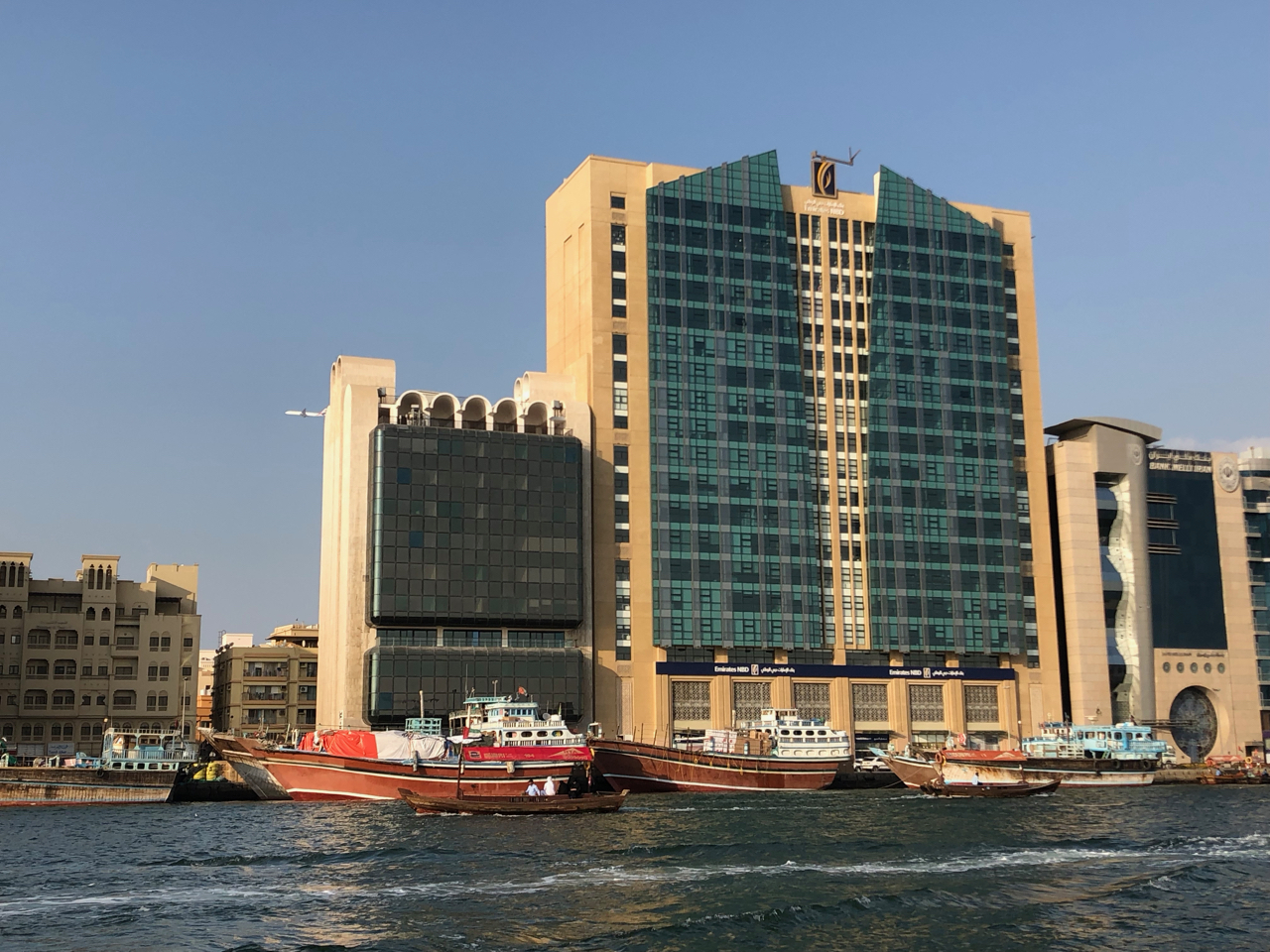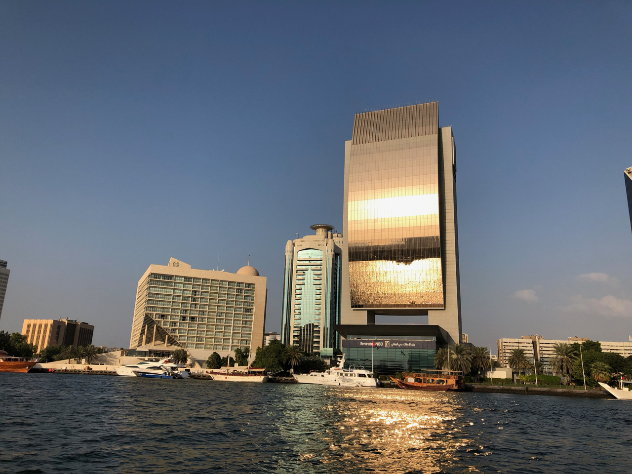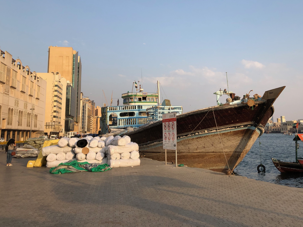 Um 14:30 Uhr trafen wir uns dann, um in Dubai die Souks und den Creek zu erkunden. Wir spazierten durch die Souks beiderseits des Creeks, bestaunten die Dauw’s, die am Ufer des Creeks zum Be- und Entladen liegen, und unternahm eine private Abra Fahrt auf dem Creek.