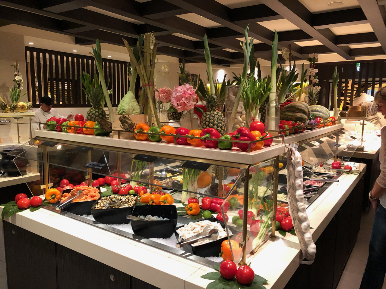 Gemeinsam erlebten wir das erste Auslaufen um 11:00 Uhr in der Lanai Bar. Danach erkundeten wir das für uns neue Kreuzfahrtschiff und landeten dabei in der am Bug gelegenen Spray Bar. Als wir dort waren, wurde gerade der Ablegesong: Orinoco Flow von Enya gespielt! Zum gemeinsamen Mittagessen trafen wir uns später im Markt Restaurant.