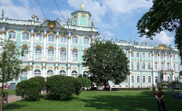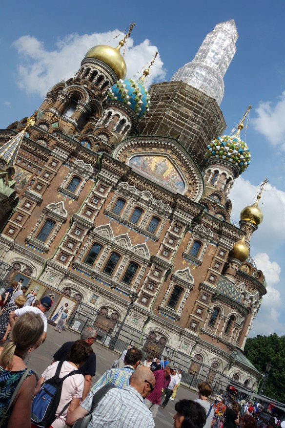 Für den ersten Tag wählten wir eine geführte Tour mit dem Bus, die uns diversen Highlights führte. So zunächst ans Ufer der Newa, zur Nikolaus-Kathedrale, zur Peter und Paul Festung und zur Erlöserkirche. Ausserdem darf natürlich ein Stop beim Giftshop nicht fehlen (man muss ja zwischendurch auch mal zur Toilette). Zum Schluss fuhren wir dann noch mit einem Touristenboot über die Newa und die Kanäle der Stadt. Dabei gab es leider einen kurzen Schauer, der aber kaum Abkühlung brachte.