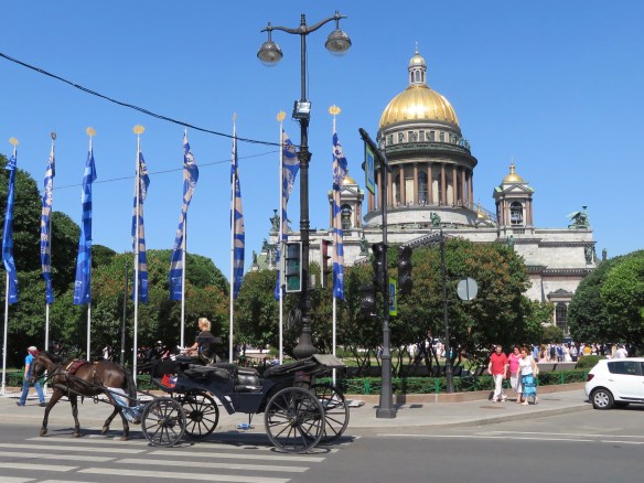 Am 2. Tag nahmen wir an einem AIDA-Ausflug teil, was den Vorteil hatte, dass wir uns auch ca. 4 Stunden individuell in der Stadt bewegen konnten. Zunächst stand aber die Isaak-Kathedrale auf dem Programm, die wir auch von innen bewundern konnten. Des weiteren konnten wir noch die Kuppel der Kathedrale erklimmen, um von hier einen herrlichen Überblick über die Innenstadt zur bekommen. In unserem freien Part haben wir nochmal die U-Bahnen mit dem Bahnhof besucht, wo wir bei unserem Besuch im Jahr 2015 auch schon waren. Danach stromerten wir durch die Stadt mit dem Schlossplatz und dem Winterpalast, der Admiralität und dem Newski Prospekt. Leider war das aufgrund er Hitze anstrengender als wir dachten.