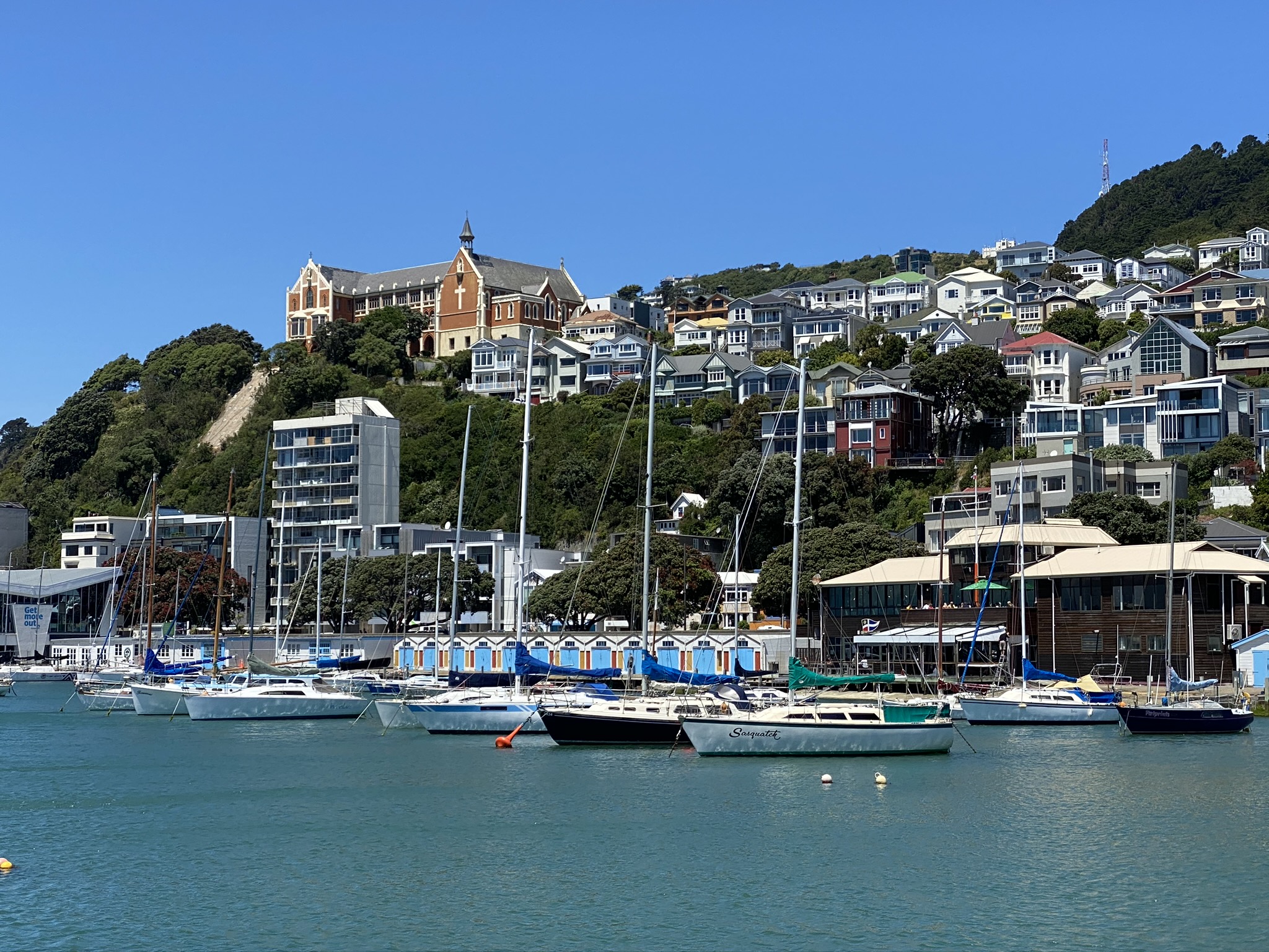 Am südlichsten Ende der Nordinsel gelegen ist die Hauptstadt Neuseelands häufig kräftigen Fallwinden ausgesetzt. Auch wir spüren den frischen, teils kalten Wind trotz herrlichsten Sonnenscheins. Den Neuseeländern scheint das nichts auszumachen, mit spärlicher Sommerkleidung trotzen sie den Winden, zu groß ist scheinbar die Begeisterung über den jetzt beginnenden Sommer.