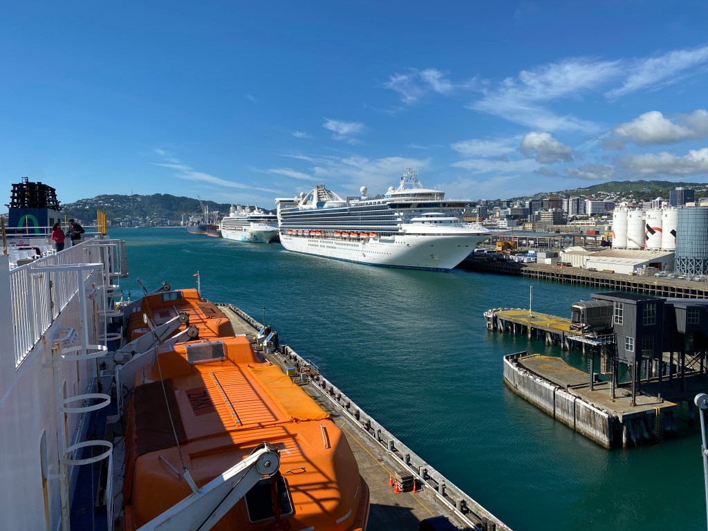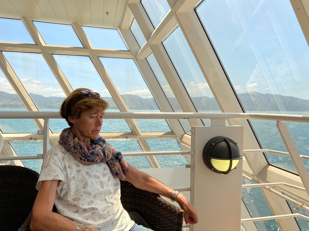 Heute steht die Überfahrt zur Südinsel auf dem Programm. Per Mail sind wir bereits informiert, dass sich die Abfahrt um 1,5 Stunden verzögern wird. Wir brechen dennoch früh auf, weil wir den Verkehr früh morgens in Wellingten nicht richtig einschätzen können. Aber nach 15 Minuten Fahrzeit, Abstellen des Mietwagens (wegen der Transportkosten wartet auf der Südinsel ein neuer auf uns) , Einchecken des Gepäcks sind wir viel zu früh und es dauert somit eine Weile an Bord der Fähre Kaitaki von Interislander gehen zu können.