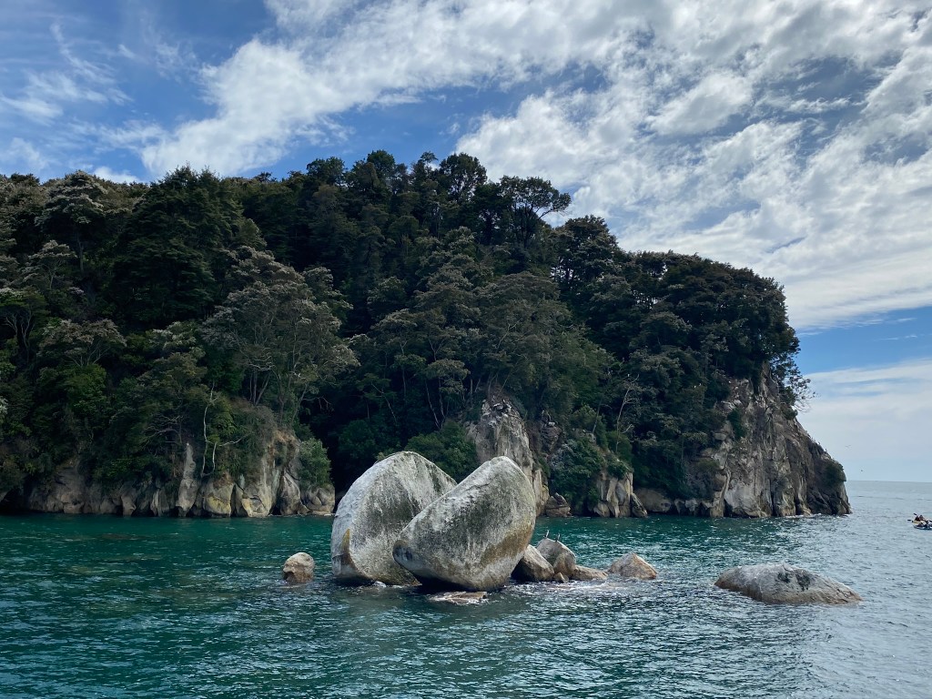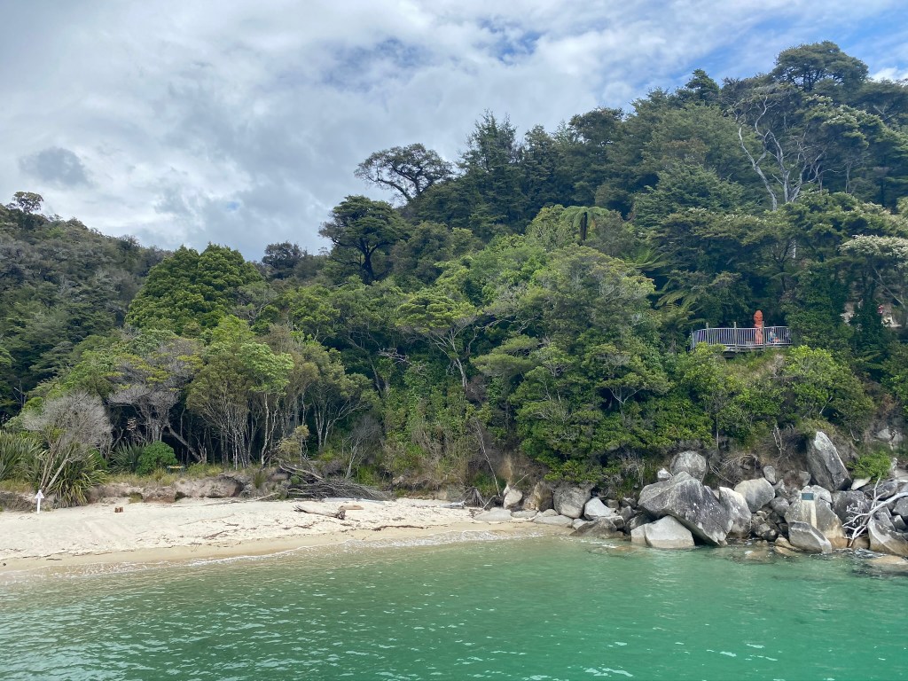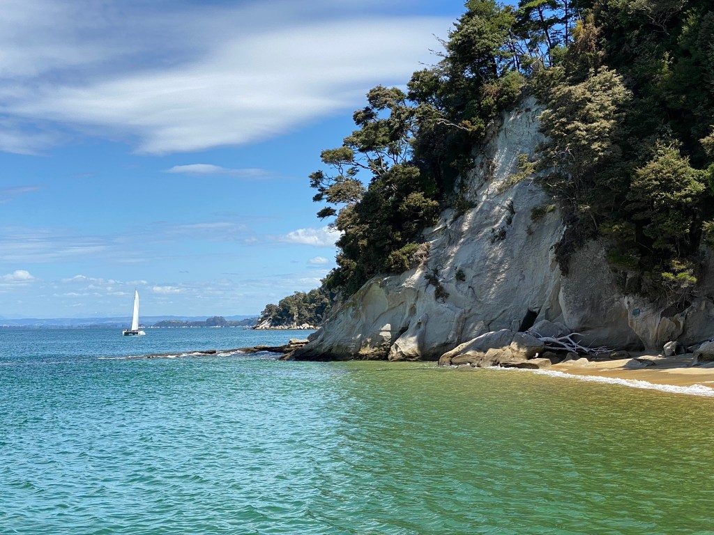 Wir beziehen Quartier in der Equestrian Lodge, einem Motel in der kleinen Küstenstadt Motueka. Hier haben wir schon bei unserer Neuseelandreise 1994 – also vor 25 Jahren – genächtigt. Motel heißt back to the roots, Auto direkt vor dem Zimmer, das aber eigentlich ein Studio ist, denn es verfügt über eine Küchenzeile und einen eigenen Schlafraum. Geworben wird mit einem Sky Receiver, der über 50 Kanäle sowie kostenlosem YouTube und Netflix Zugang bietet, was wir aber alles nicht brauchen. Dazu aber später mehr. Der erste Weg führt in den Nationalpark, der im äußersten Nordwesten der Südinsel gelegen nur per Boot oder zu Fuß erreicht werden kann.