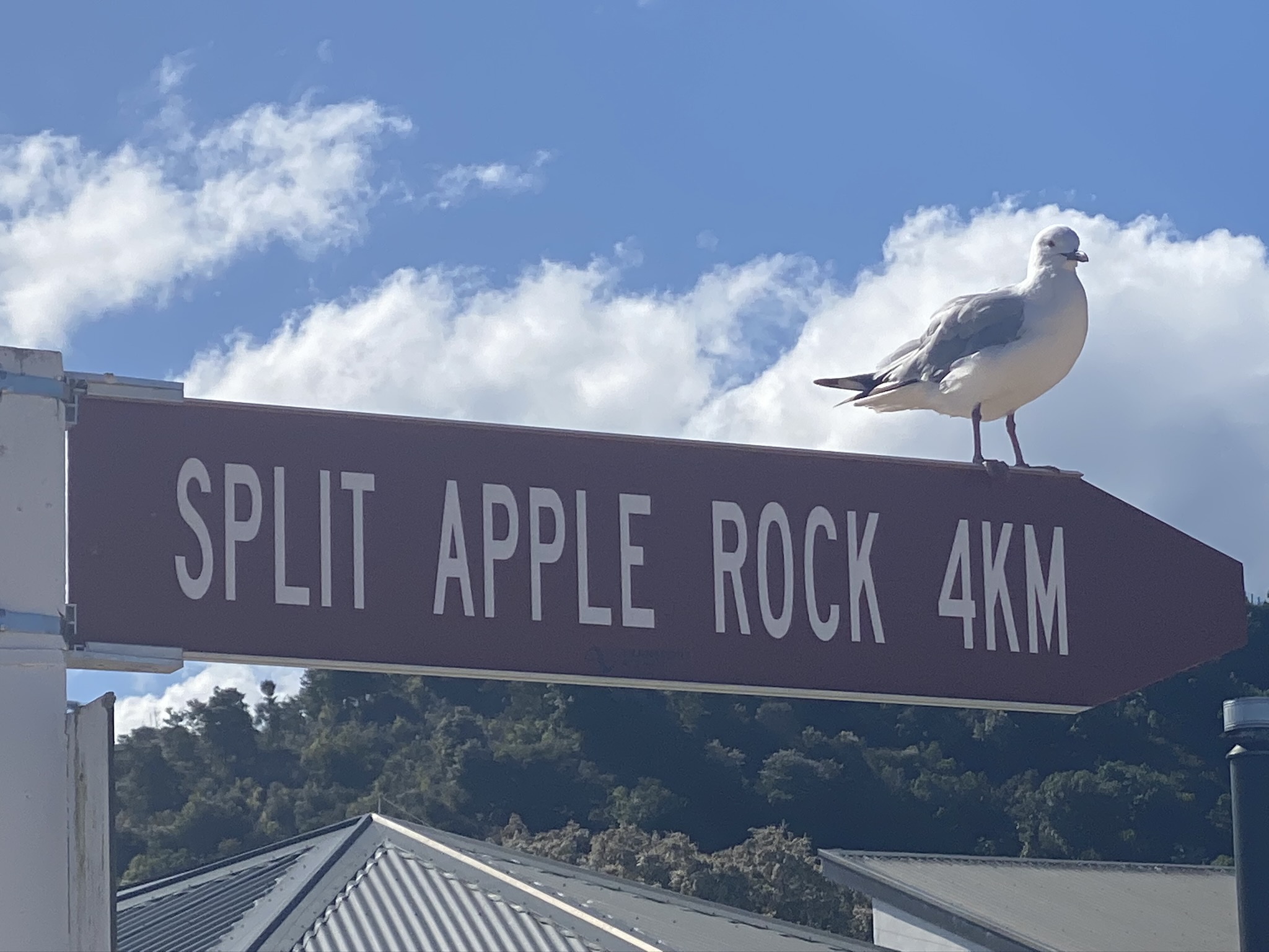 Motueka und Kaikerikeri sind die Eingangstore zum Abel Tasman NP. Wir fahren mit dem Wassertaxi (unverschämt teuer mit ca. 50€ Pro Person) ca. eine Stunde von Bucht zu Bucht nach Norden, um schließlich in der Barks Bay zu stranden. Dort wollen wir baden und ein wenig sonnen. Doch der Strand enttäuscht, die Sonne verkriecht sich hinter Wolken und es wird frisch. Sandfliegen und hungrige Möwen interessieren sich für uns … Da nehmen wir lieber ein Taxi früher als geplant zurück und genießen ein besonderes Schauspiel als Dutzende von Delphinen sich in einer der Buchten tummeln und an allen Ecken und Enden mit kurzen Sprüngen aus dem türkisfarbenen Wasser auftauchen. Am Ufer einer kleinen Insel streiten sich zudem viele Seehunde um den besten Sonnenplatz.