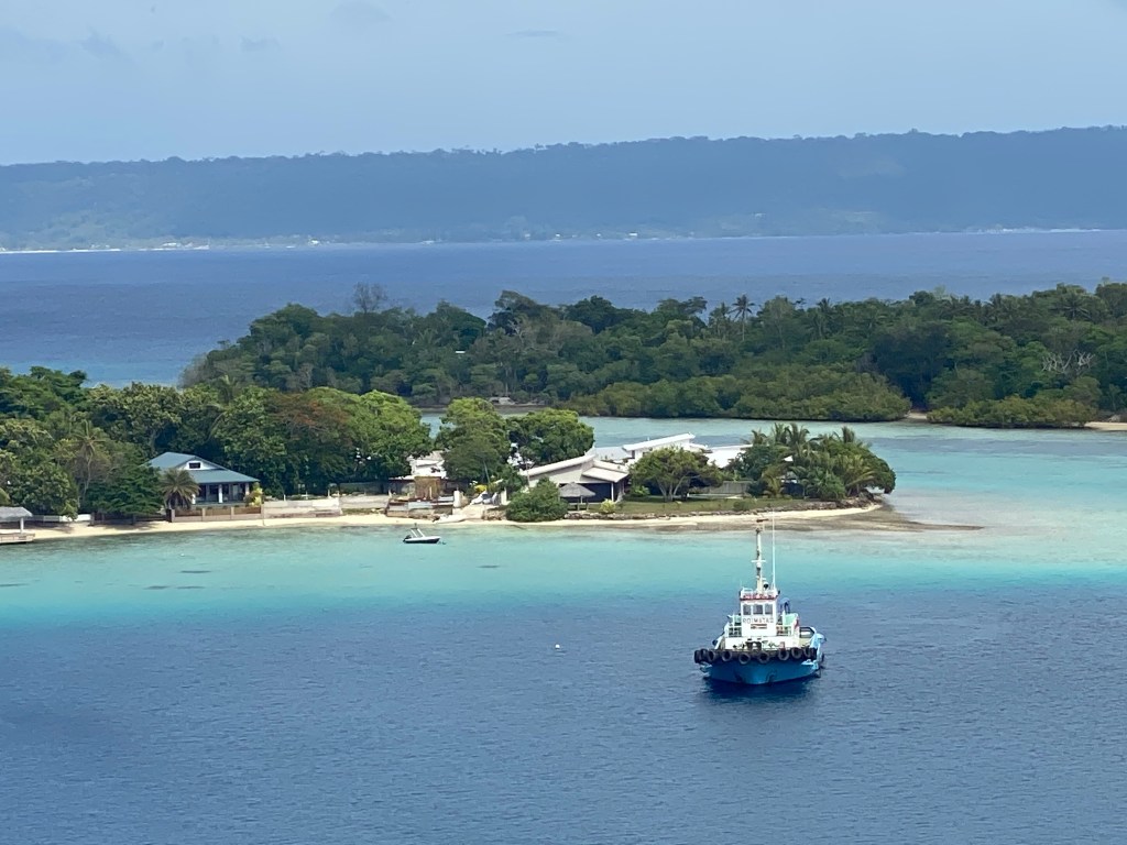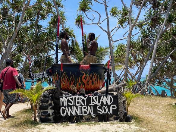 Von Neukaledonien geht es weiter nach Mystery Island, welches zum kleinen Inselstaat Vanuatu gehört. Es ist eine circa 1 km lange, unbewohnte Insel, umgeben von herrlichen Stränden, in deren Mitte sich eine alte Graslandebahn für kleinere Flugzeuge erstreckt. Ausgestattet mit Badesachen gehen wir per Tenderboot an Land. Dort werden wir von einigen geschäftstüchtigen Einheimischen empfangen, die bereits vor den Kreuzfahrern zur Insel übergesetzt sind. Vom Schnorchelausflug am Korallenriff hin bis zum Spassfoto mit dem riesigen Kannibalentopf gibt es ein kunterbuntes Angebot, es sich auf der Insel gutgehen zu lassen. Wir genießen einfach nur ein schattiges Plätzchen am Strand, einen ausgiebigen Strandspaziergang und das herrliche Wasser, das so salzhaltig ist, dass man darauf liegen kann.