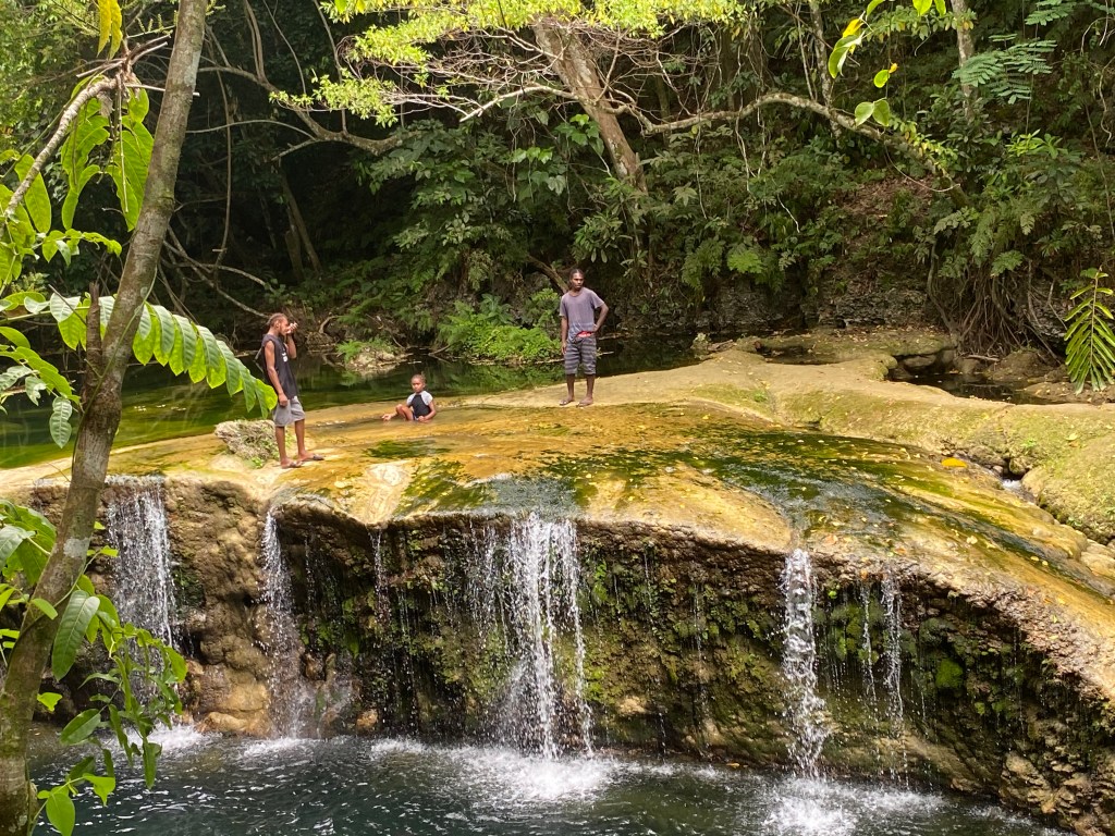 Es ist schon beeindruckend, mit welcher Herzlichkeit, Einfachheit und mit welchem Engagement die Präsentation erfolgt. Ähnliches erfährt uns bei der Blauen Lagune und den Wasserfällen. Wir besuchen zudem eine Familie (bestehend aus einer Mutter mit fünf Töchtern), die einige Früchte zur Erfrischung anbietet. Vielleicht sind sie tatsächlich – wie behauptet – Leidtragende des letzten verheerenden Zyklons, vielleicht aber auch Verwandte Alfreds, denen somit ein paar Dollar zugeschustert werden….