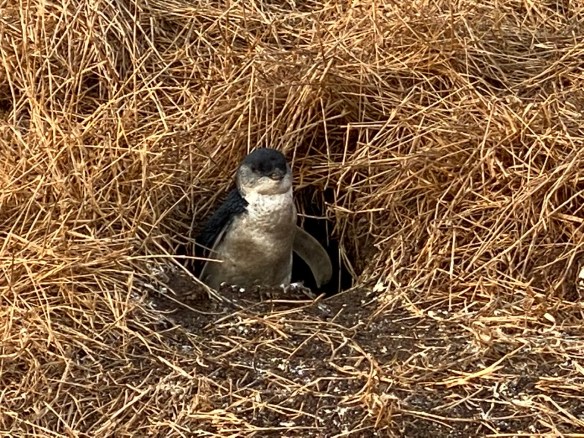 Nachdem im vorherigen Beitrag ein paar Bilder bereits einen Eindruck der australischen Art des Campings gegeben haben, nun etwas zum Thema Natur. Am südwestlichen Ende der Insel gibt es eine Halbinsel Summerlands, die zahlreiche Naturschauspiele bietet. Da sind die Rocks in der stürmischen Bass-Street, mit Seevögeln, Seelöwen, Seehunden und natürlich auch die Kleinen Pinguine, die dort nisten, brüten und ihre Jungen großziehen, wobei sie tagtäglich ins Meer zur Nahrungssuche herausschwimmen und mit dem Sonnenuntergang wieder an Land kommen, um sich mühsam den steilen und beschwerlichen Weg zu ihren Höhlen hoch zu kämpfen, zu dem noch vorbei an Hunderten von Zuschauern, die ihre wahre Freude haben, aber keine große Aufstiegshilfe bieten.