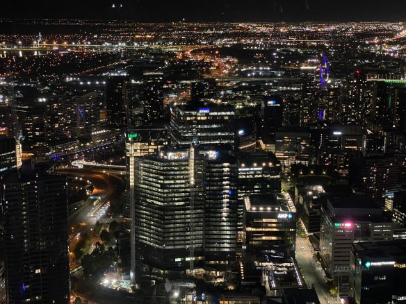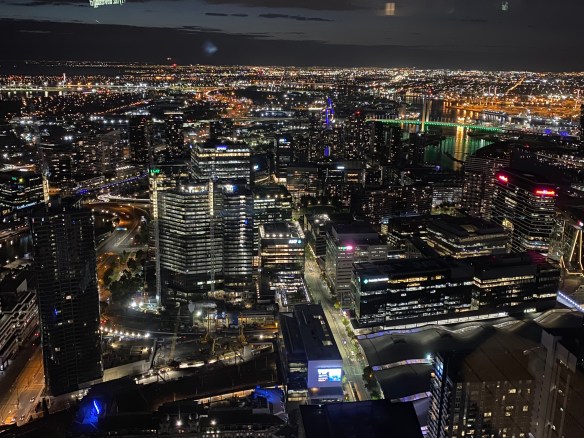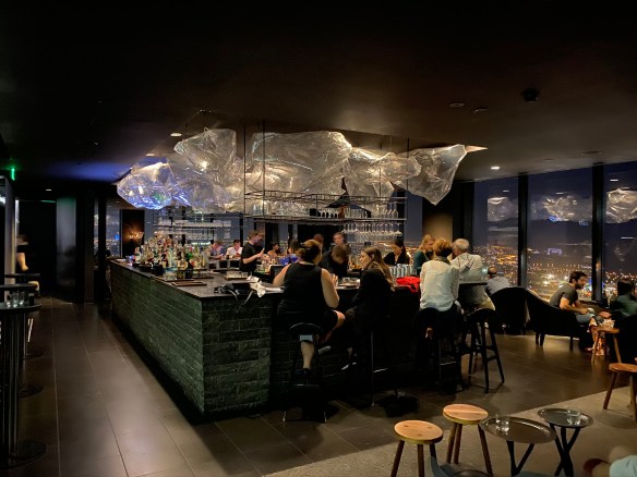Am Abend haben wir großes Glück und ergattern einen super Tisch direkt an der Flusspromenade und genießen Barramundi bzw. leckere Fish&Chips, die regelmäßig einen delikaten Fisch in leckerer Bierteigkruste beinhalten. Danach geht es über den Fluss zur Lui Bar. Nach kurzer Wartezeit schickt uns das „Bodenpersonal“ in den 55. Stock. Dort werden wir bereits am Fahrstuhl erwartet und erhalten zunächst einen Tisch am Rand, dann zwei Plätze an der Bar, dann zwei exquisite Fensterplätze. Der Ausblick bei diesem vierten Ausflug über die normalen Dächer des nächtlichen Melbournes ist grandios. Es gibt auch noch einen Aussenbereich, im 55. Stock ist das nicht jedermanns Sache. Wir jedoch genießen den Ausblick und mehrere Gin Tonic.