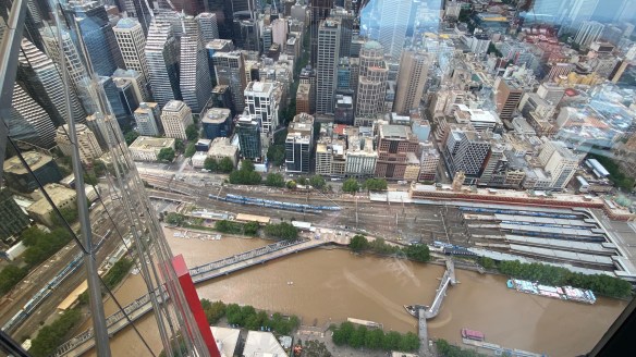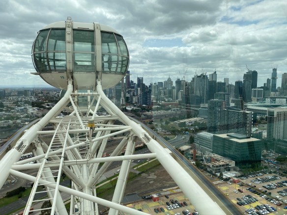 Hier fahren tausende von Strassenbahnen, alte, neue, kreuz und quer, quietschend und läutend. Wir finden dennoch den Weg ins Zentrum mit den sehenswerten öffentlichen Gebäuden, den unzähligen Cafés und Take-aways, den Shops. Weiter geht es per Tram zum Riesenrad Melbourne StarFlyer in die Docklands, die in den letzten Jahren aufwändig aufgepäppelt worden sind, sich bezüglich der Akzeptanz aber schwer tun. Beim Riesenrad genießen wir exquisit zu zweit eine riesige Gondel. Die Runde dauert 35 Minuten und wir erreichen eine Höhe von knapp 120m. Eine Tour, die sich lohnt. Es geht somit das zweites Mal hoch hinaus.