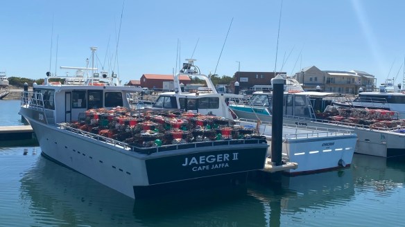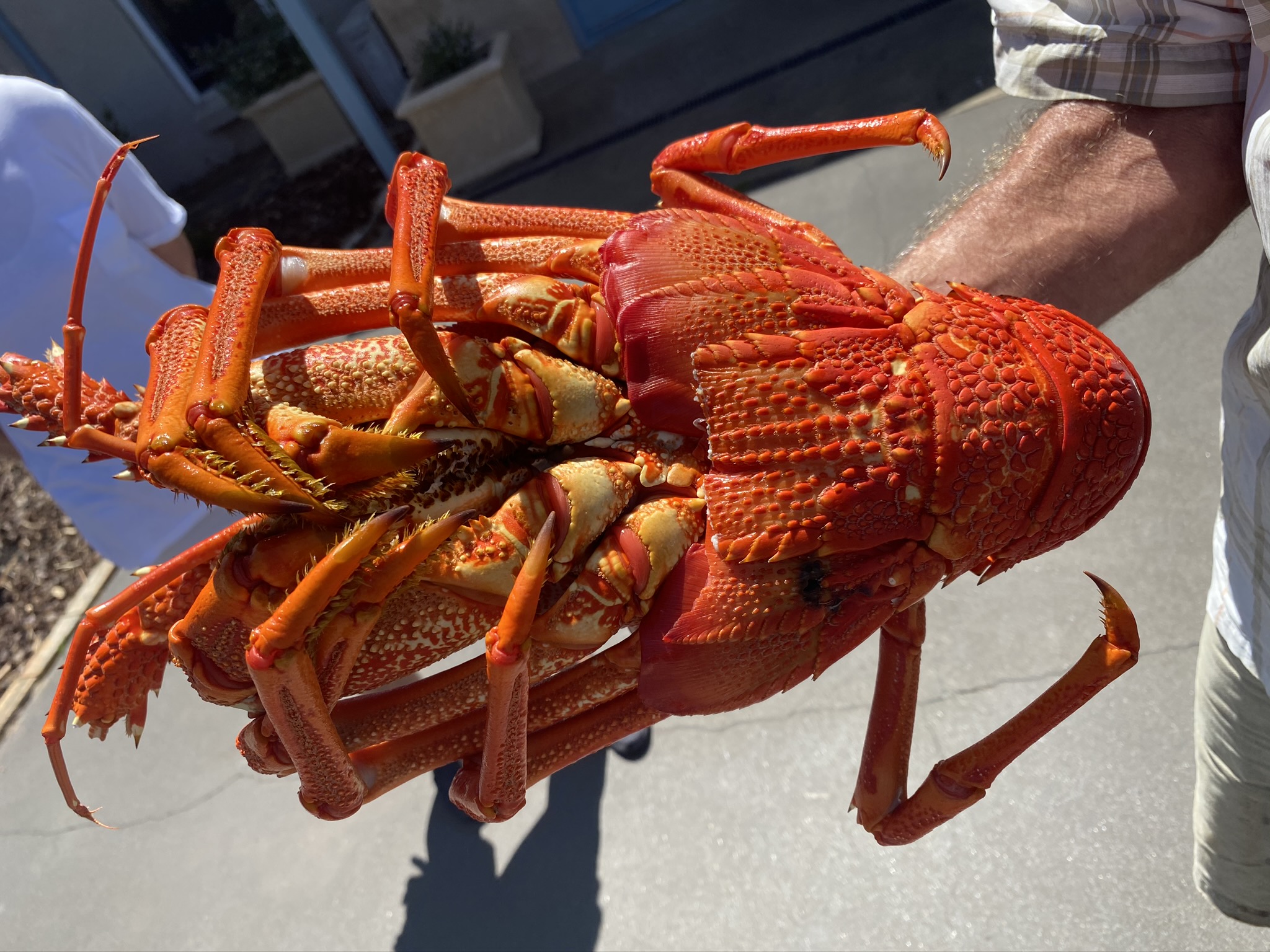 Für diese zwei Fotos muss allerdings der Rekordfang vom Vortag herhalten. Ein Lobster von 3,5 kg und einem Marktwert von bis zu 350 Aus$ oder mehr als 200€. Bei privat gefangenen Lobstern muss aber vor der Rückfahrt in den Hafen an der Unterseite ein Teil der Schale abgeschnitten werden. Passiert das nicht und kommt solch ein Lobster in den kommerziellen Handel drohen drastische Strafen! Gut so, denn andernfalls würden viele auf die Idee des Lobsterfangs kommen und sich nebenbei einige Dollars zu verdienen…Der Überfischung wären Tür und Tor geöffnet.