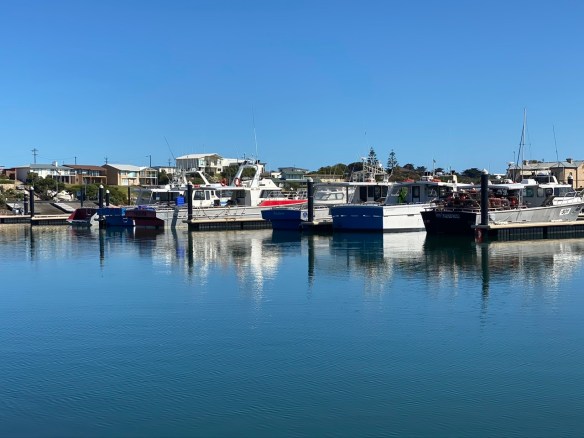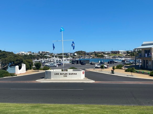 In Beachport sind wir wieder ganz nah am Ozean und sind beeindruckt von der tiefblauen Farben des Wassers und den weiss-gelben Stränden. Schließlich erreichen wir nach 375 km unser Etappenziel in Robe. Wir scheinen wieder einen Volltreffer mit der Auswahl der Bed & Breakfast Unterkunft erzielt zu haben: Da sind der freundliche Empfang von Carolyn und Andrew, die prompte Einladung zu frischem Kaffee und selbstgebackenen Keksen, die Lage des Hauses, der Blick auf die Bucht, auch von unserem Zimmer.