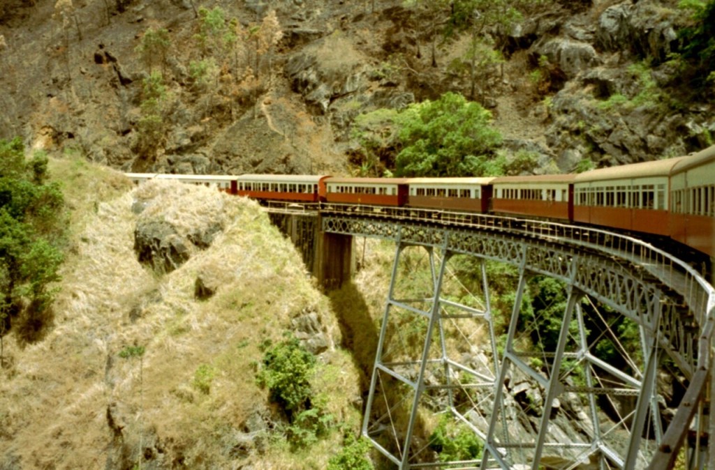 Es folgte der Weiterflug mit Zwischenlandung nochmal in Alice Springs und dem etwas abenteuerlichem Anflug auf Cairns. In Queensland erstreckt sich der tropische Regenwald bis an die Küste mit ihrem vorgelagerten Barrier Riff. Ein Abstecher zum Daintree River und per Eisenbahn nach Kuranda standen auf dem Programm. Ansonsten genossen wir unser wunderschönes Hotel nördlich von Cairns mit tollem Pool im künstlichen Regenwald.