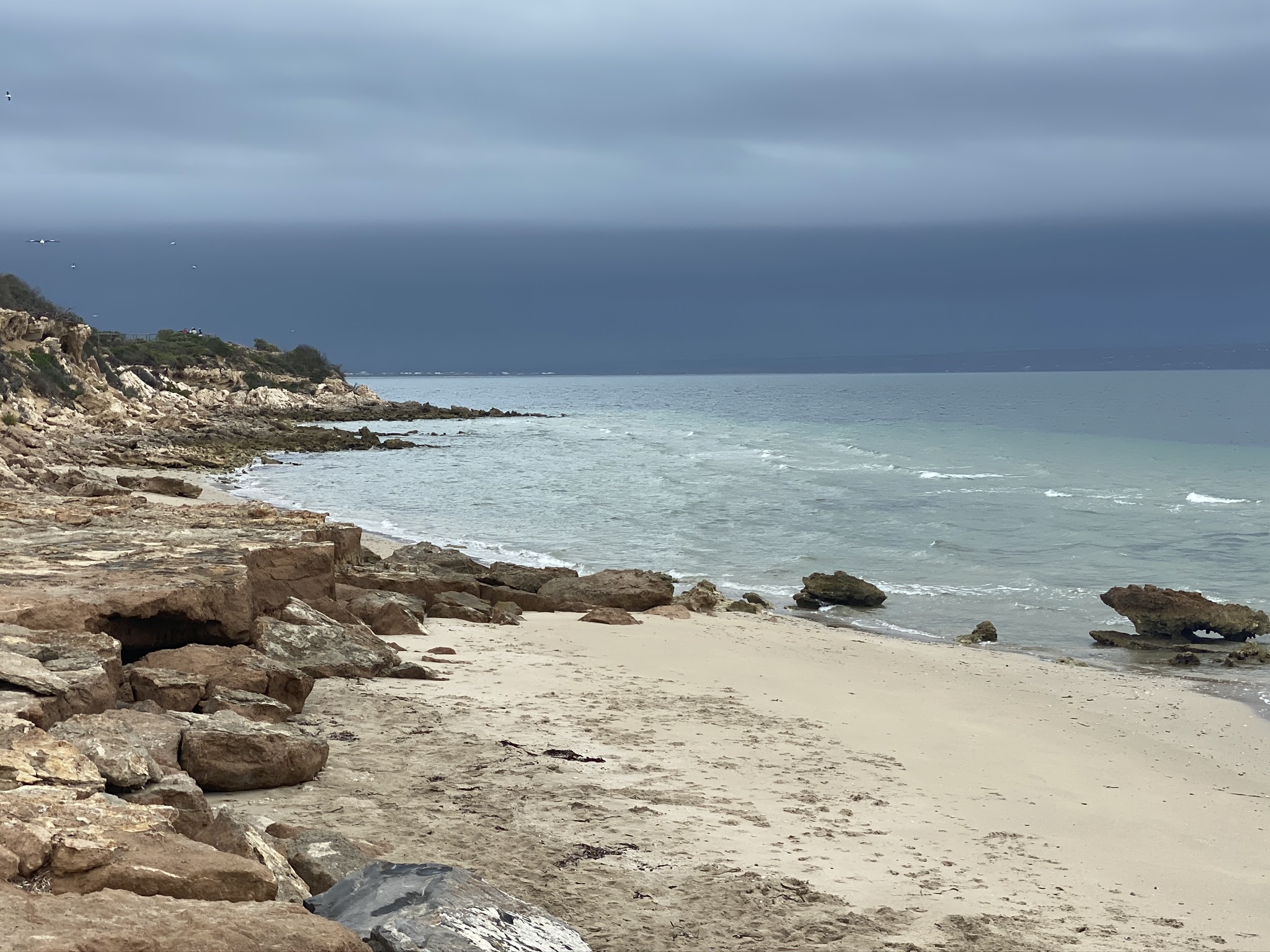 Kommen wir zur schönen, weitgehend unversehrten Seite von Kangaroo Island. Die Landschaft auf der östlichen Seite ist zwar etwas unspektakulären, dennoch reizvoll. Wir können zudem während einiger Touren zum Nord- und Südstrand zahlreiche Tierbeobachtungen erleben. Die Kakadus treten hier meist in großen Schwärmen von mehr als 100 Vögeln auf. Da sind die Pelikane eher in kleinen Gruppen vertreten. Wenn sie über einem kreisen, oder einen Anflug auf die kleinen Landeflächen der Straßenlampen versuchen, ist das schon ein beeindruckendes Bild.